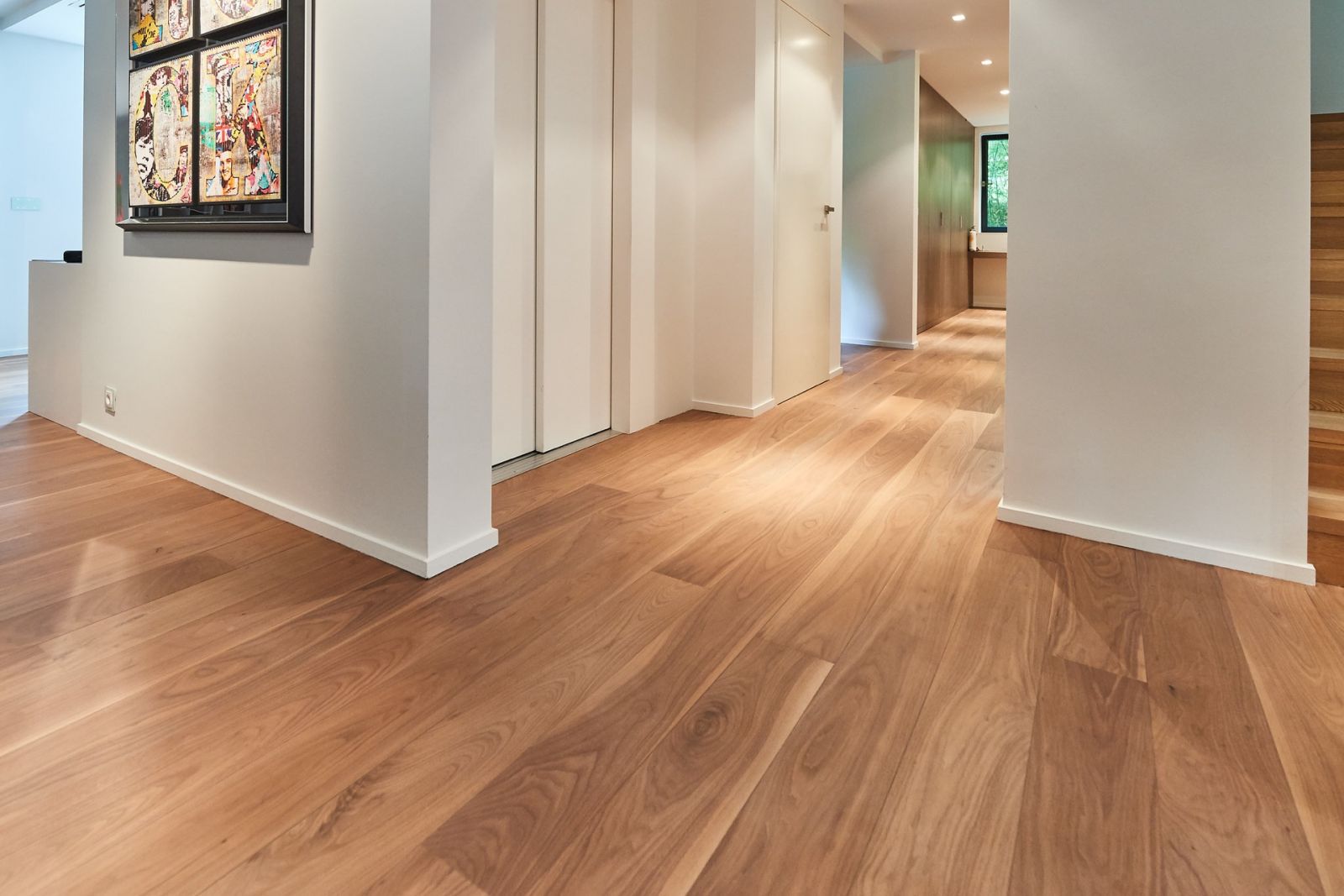 Plancher semi-massif (stabilisé), noyer, huilé.